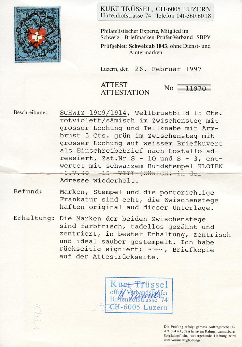 Periziato da Trüssel con certificato 11970.