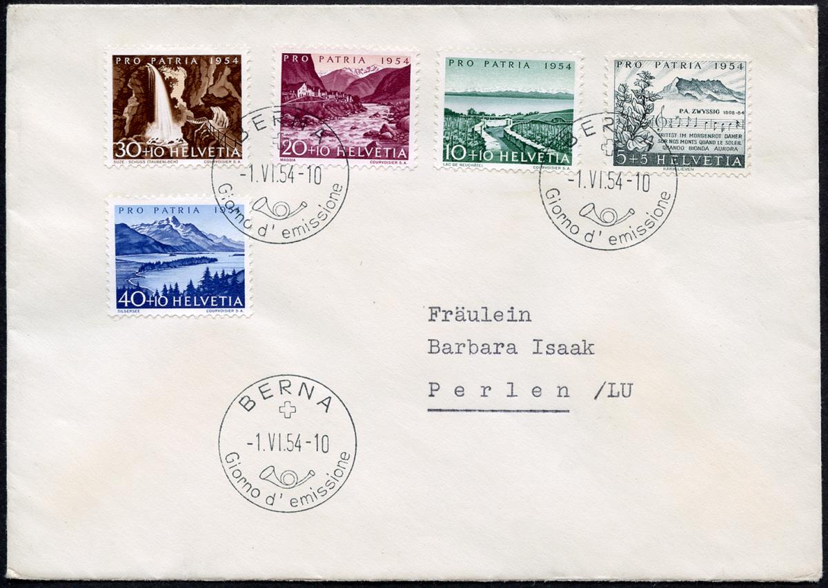 First day of issue stamp BERNA 1.VI.54-10 GIORNO D'EMISSIONE