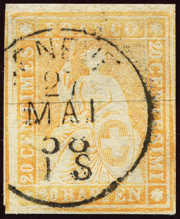 Une pièce éclatante et magnifique, avec des marges complètes sur les quatre côtés. Le timbre Strubel est centré et d'une qualité exceptionnelle, et en parfait état.