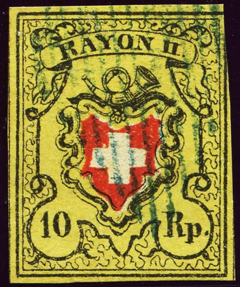 Un timbre magnifique et net, légèrement oblitéré d'un losange bleu. Le timbre présente de bonnes marges sur trois côtés, mais est légèrement rogné en haut à droite. La couleur est fraîche et le timbre est par ailleurs en bon état.
