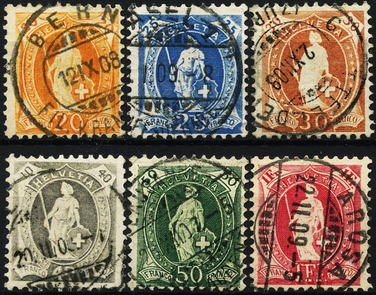 1907-1908, Helvetia debout, papier fibre, 14 dents, WZ