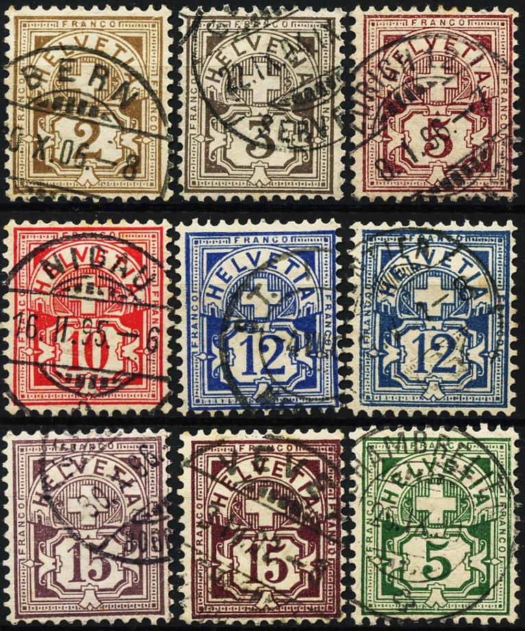 Complete set of 9 stamps, including 62Bb and 64Bb.