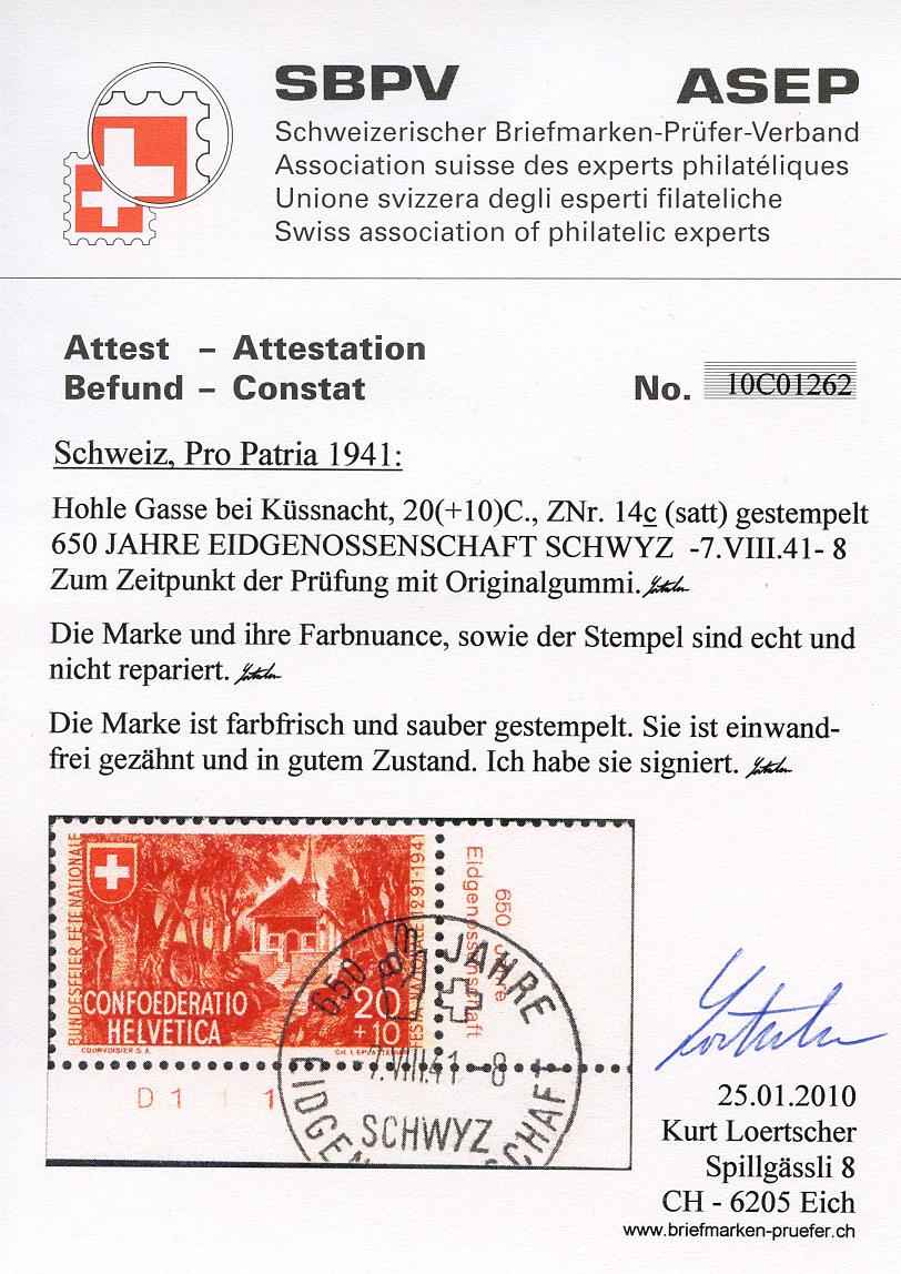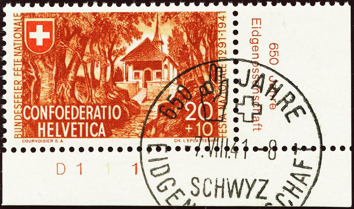 Gestempelt mit 650 JAHRE EIDGENOSSENSCHAFT -7.VIII. 41-8