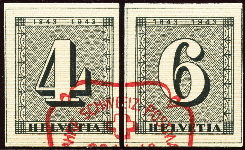 1943, Individual stamps from the 100th anniversary block of Swiss postage stamps