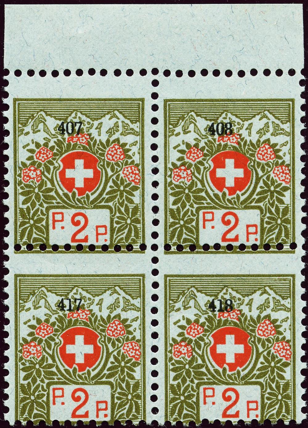 Ein schöner und farbfrischer Viererblock, mit deutlich verschobener Zähnung. Das Stück ist intakt gezähnt sowie tadellos und postfrisch erhalten.