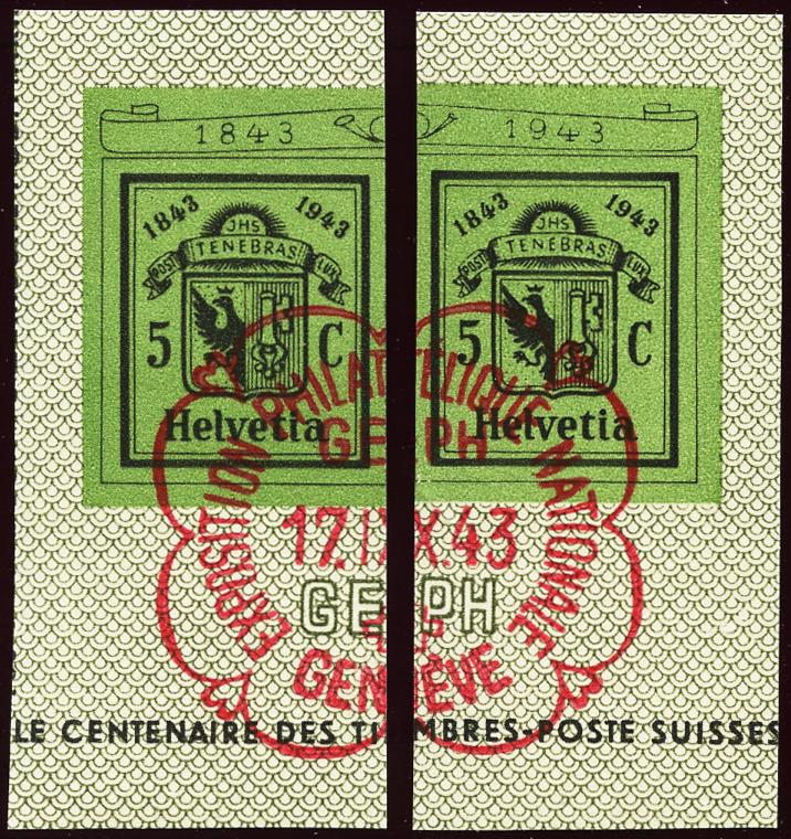 Rot gestempelt mit EXPOSITION PHILATÉLIQUE NATIONALE 17.IX.43 GENÈVE