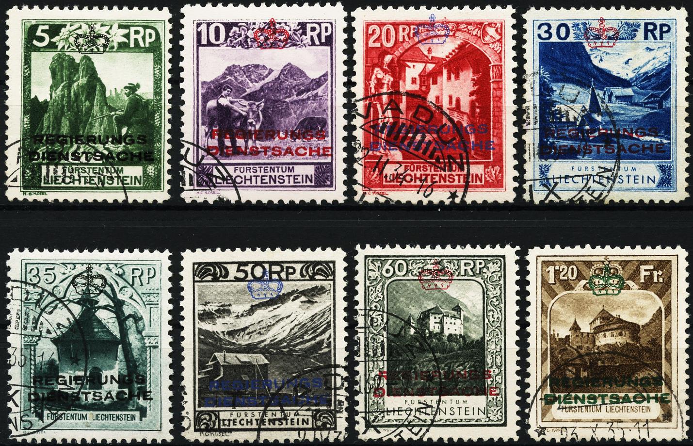 1932, Landschaftsbilder-Ausgabe 1939 mit zweizeiligem Aufdruck "REGIERUNGSDIENSTSACHE" und Krone