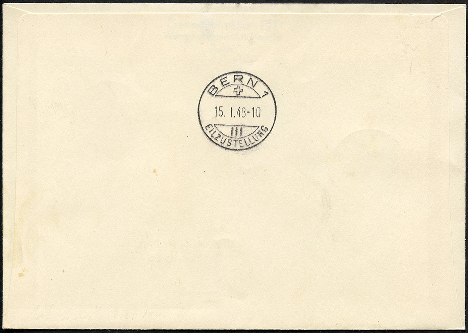 Ersttagsstempel BERN 15.I.48-12 III BRIEFANNAHME
