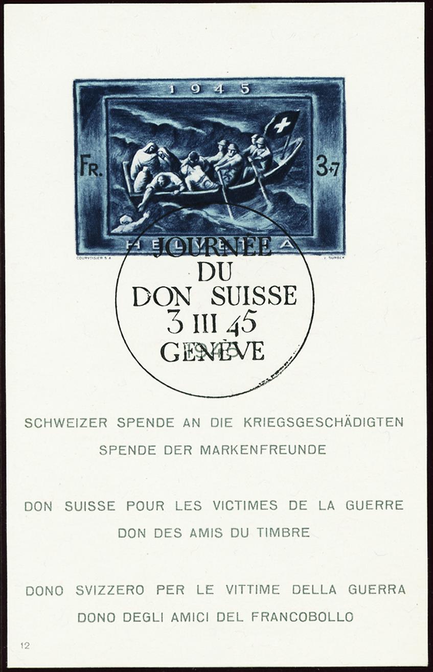 Gestempelt mit JOURNÉE DU DON SUISSE 3.III.45 GENÈVE (PÉN Nr. 254)