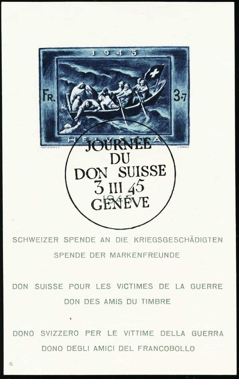 Gestempelt mit JOURNÉE DU DON SUISSE 3.III.45 GENÈVE (PÉN Nr. 254)