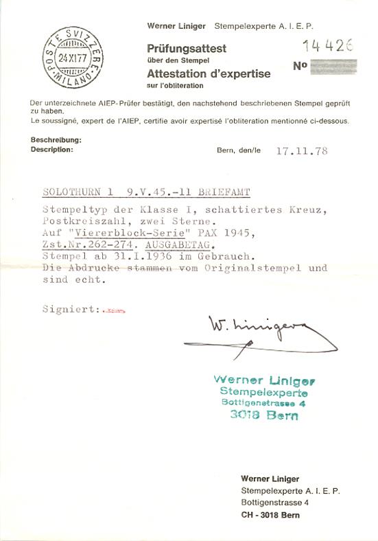 Ersttagsstempel SOLOTHURN 1 9.V.45.-11 BRIEFAMT