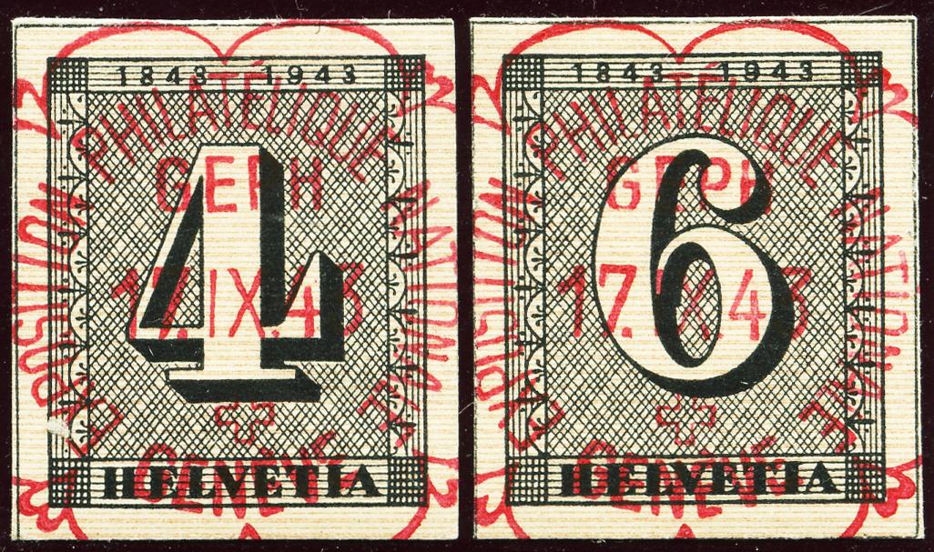 1943, Einzelwerte aus Jubiläumsblock 100 Jahre Schweizerische Postmarken
