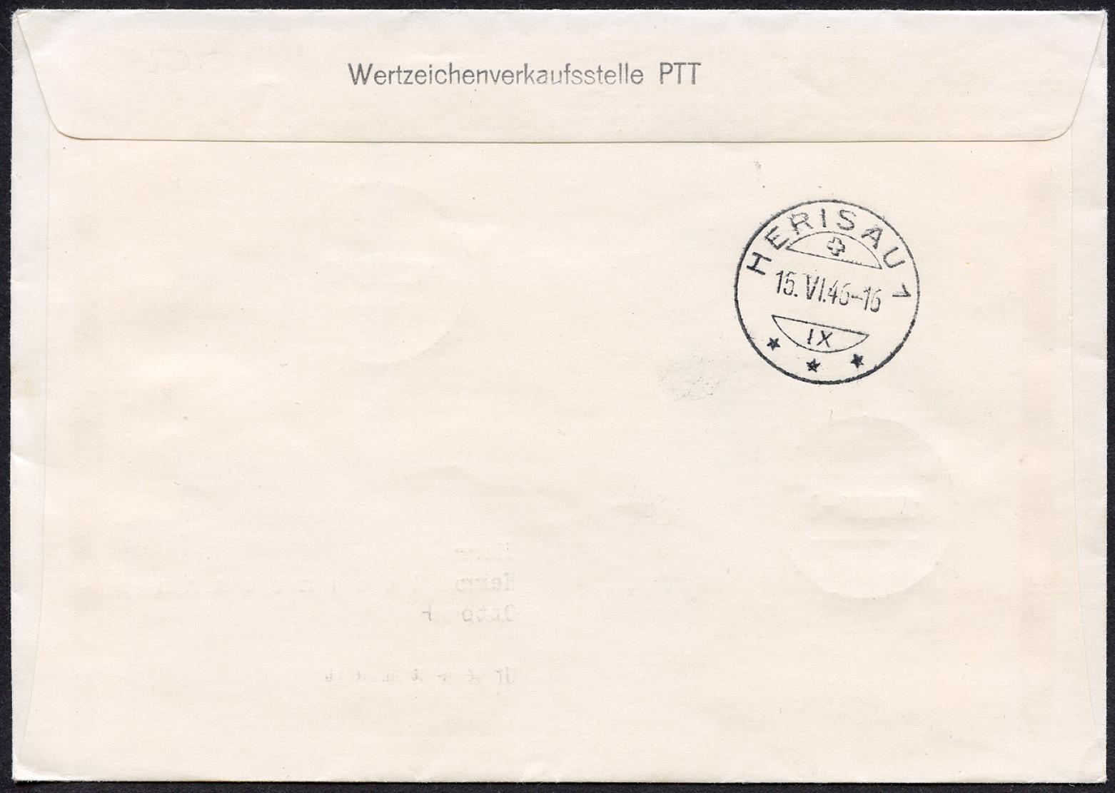 Schöner und eher seltener FDC, der von Lutry nach Herisau befördert wurde. Ankunftsstempel auf der Rückseite. Die Sondermarken sind farbenfrisch, bestens gezähnt und zudem klar gestempelt. Die ganze Einheit ist in sehr guter wie auch sauberer Erhaltung.