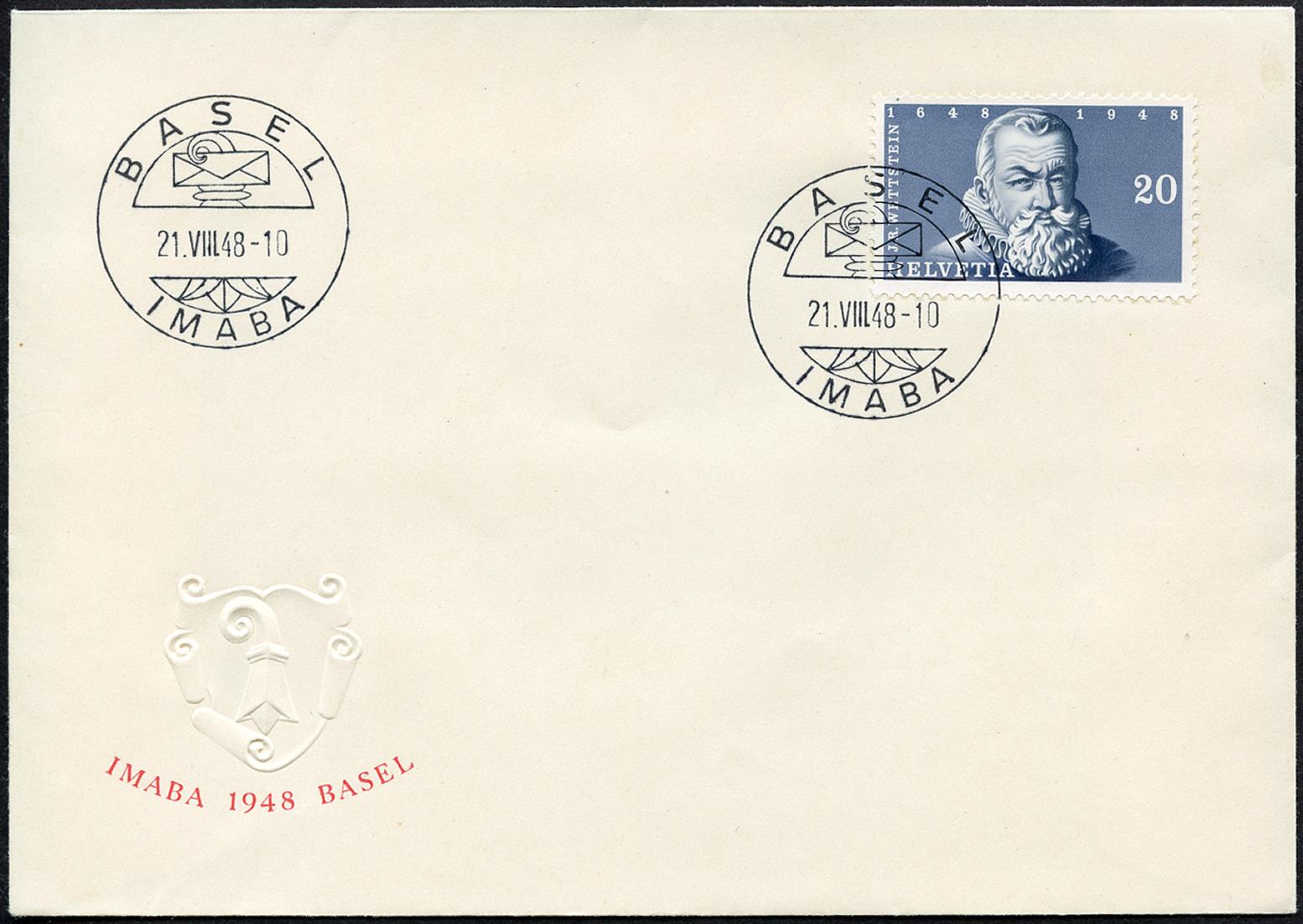 Ersttagsstempel BASEL 21.VIII.48-10 IMABA