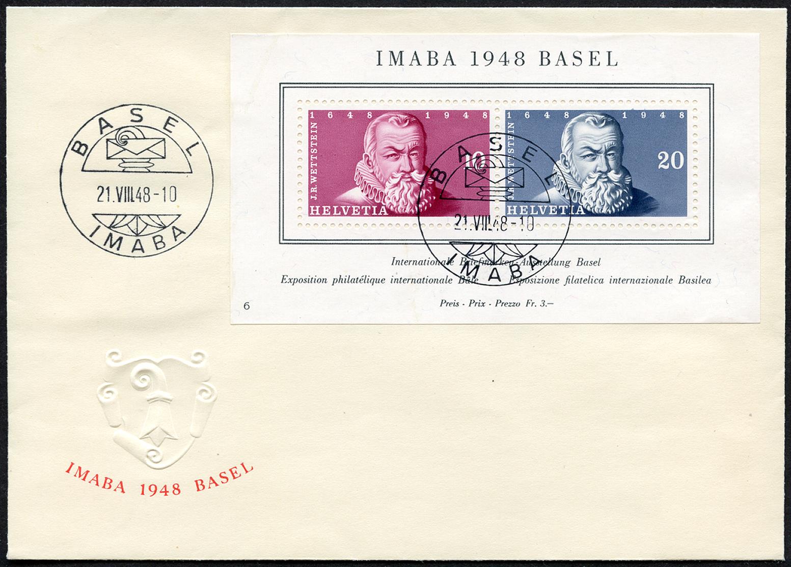 Ersttagsstempel BASEL 21.VIII.48 - 10 IMABA