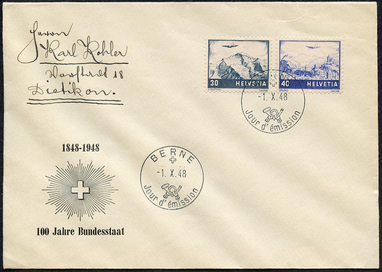 Timbre premier jour d'émission BERNE -1. X. 48 Jour d' emission