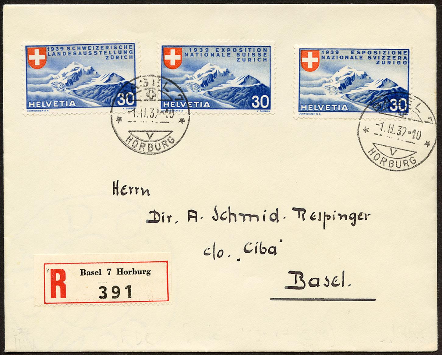 Timbre premier jour d'émission BASEL 7 -1.II.39-10 HORBURG