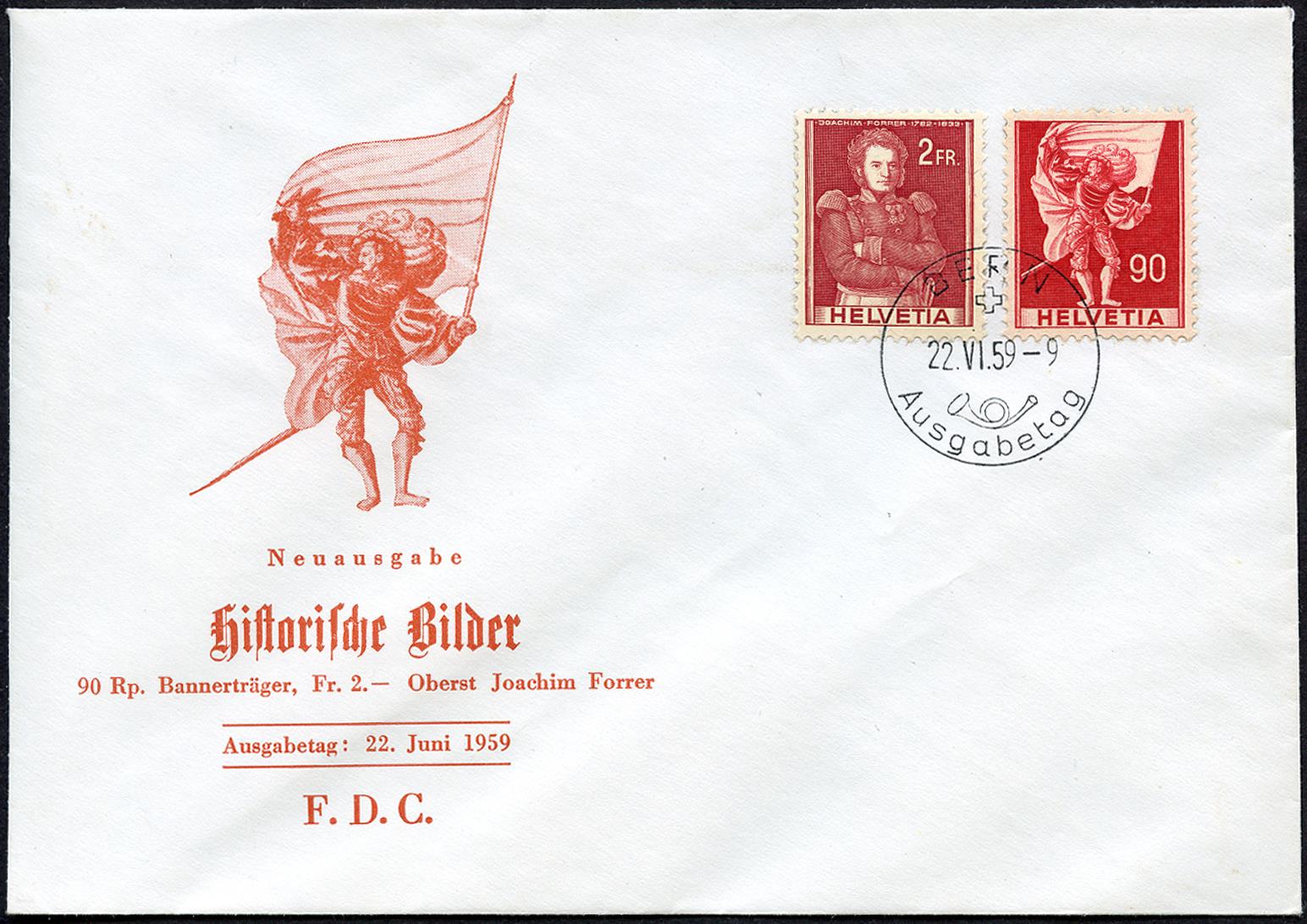 Francobollo del primo giorno di emissione BERN 22.VI.59-9 Ausgabetag