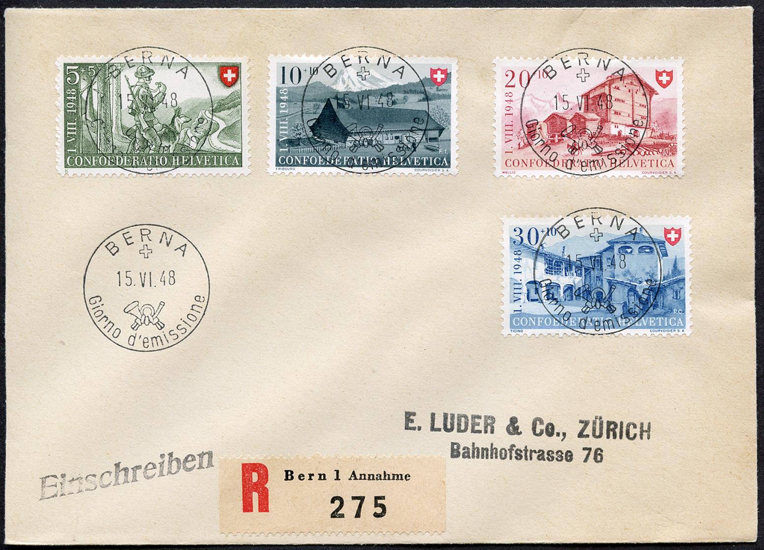 Ersttagsstempel BERNA 15.VI.48 Giorno d'emissione