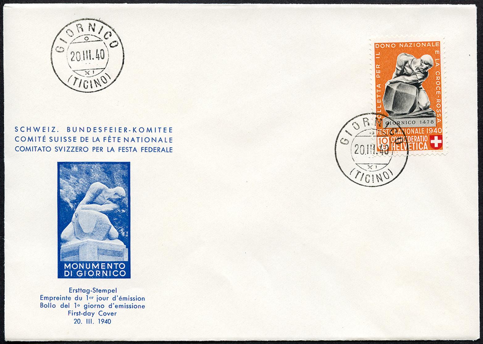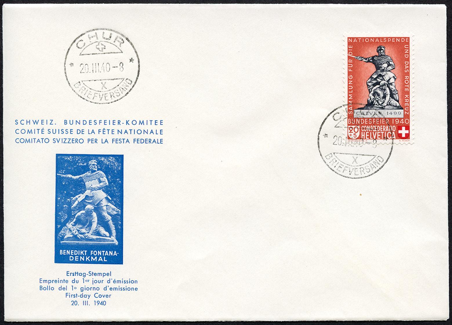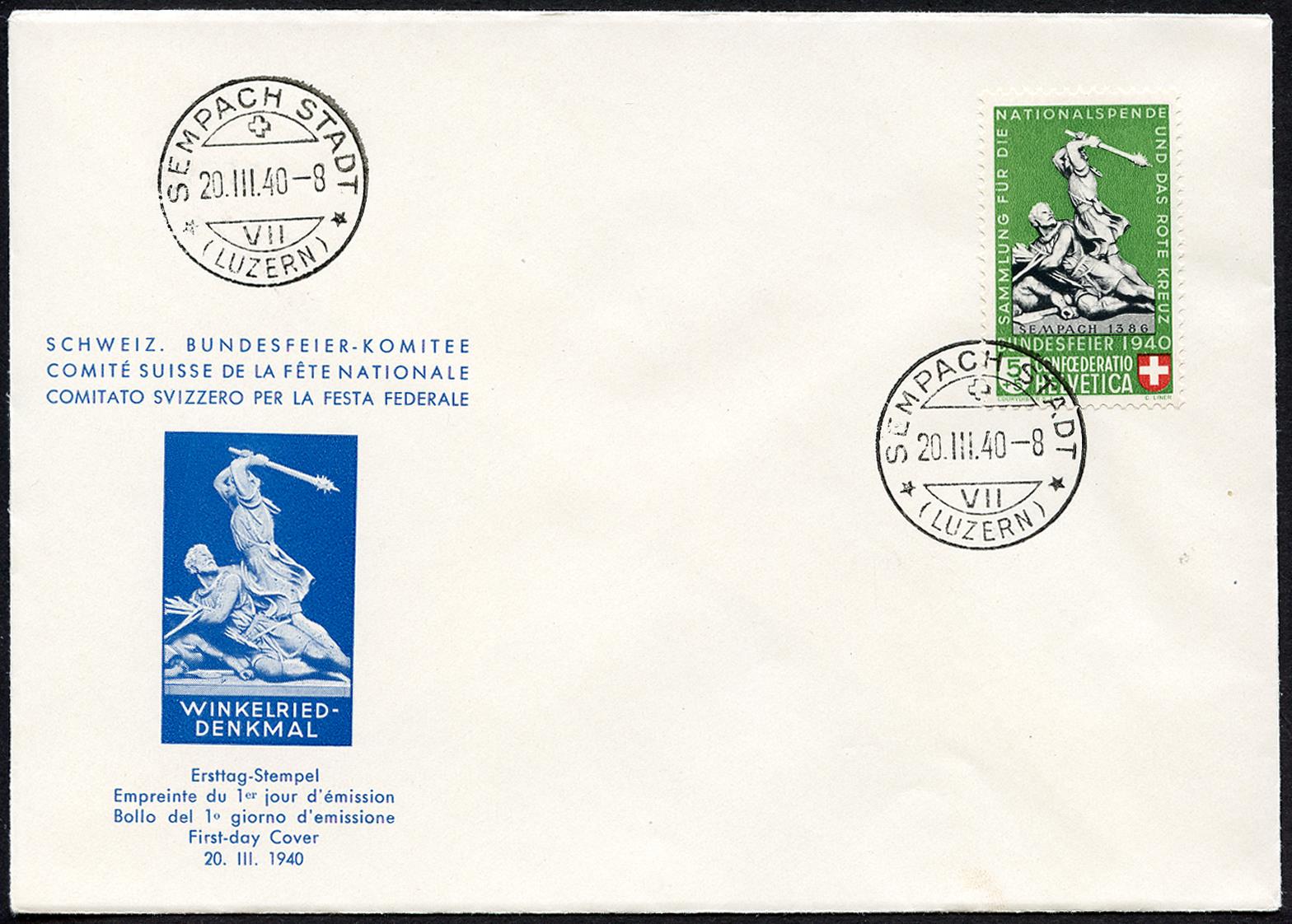 Ersttagsstempel ASUEL, SEMPACH-STADT, GIORNICO, CHUR 20.III.40