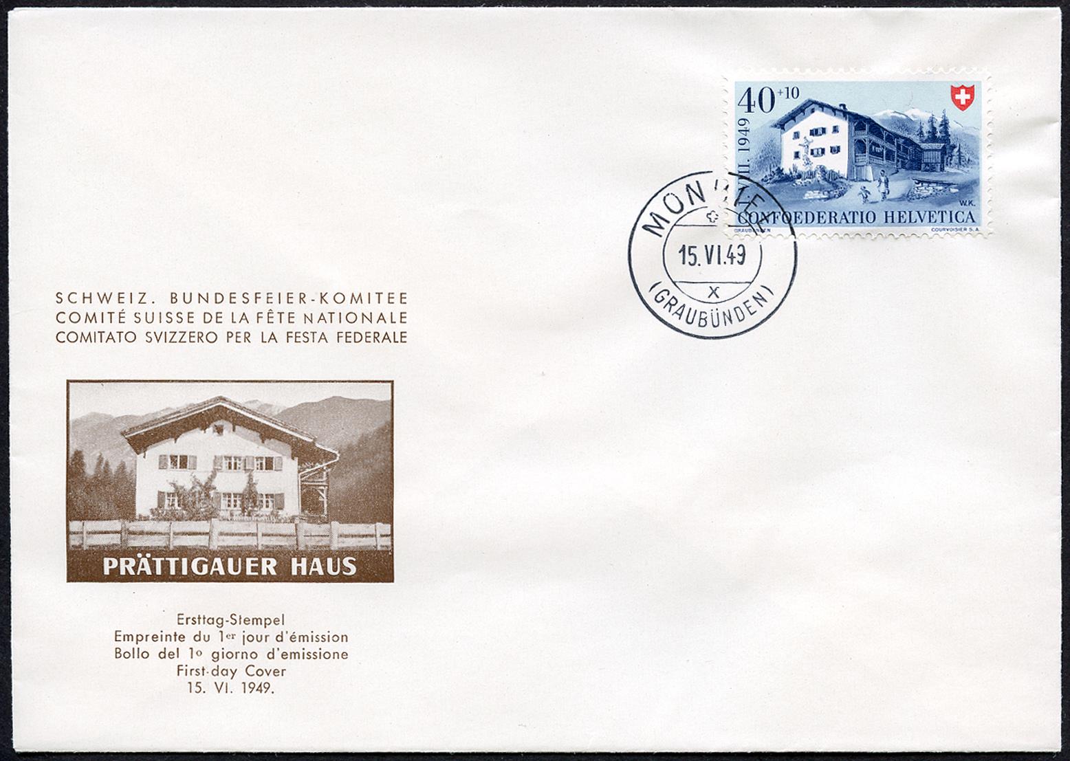 Ersttagsstempel Genève, Tenniken, Horw, Monbiel 15.VI.49