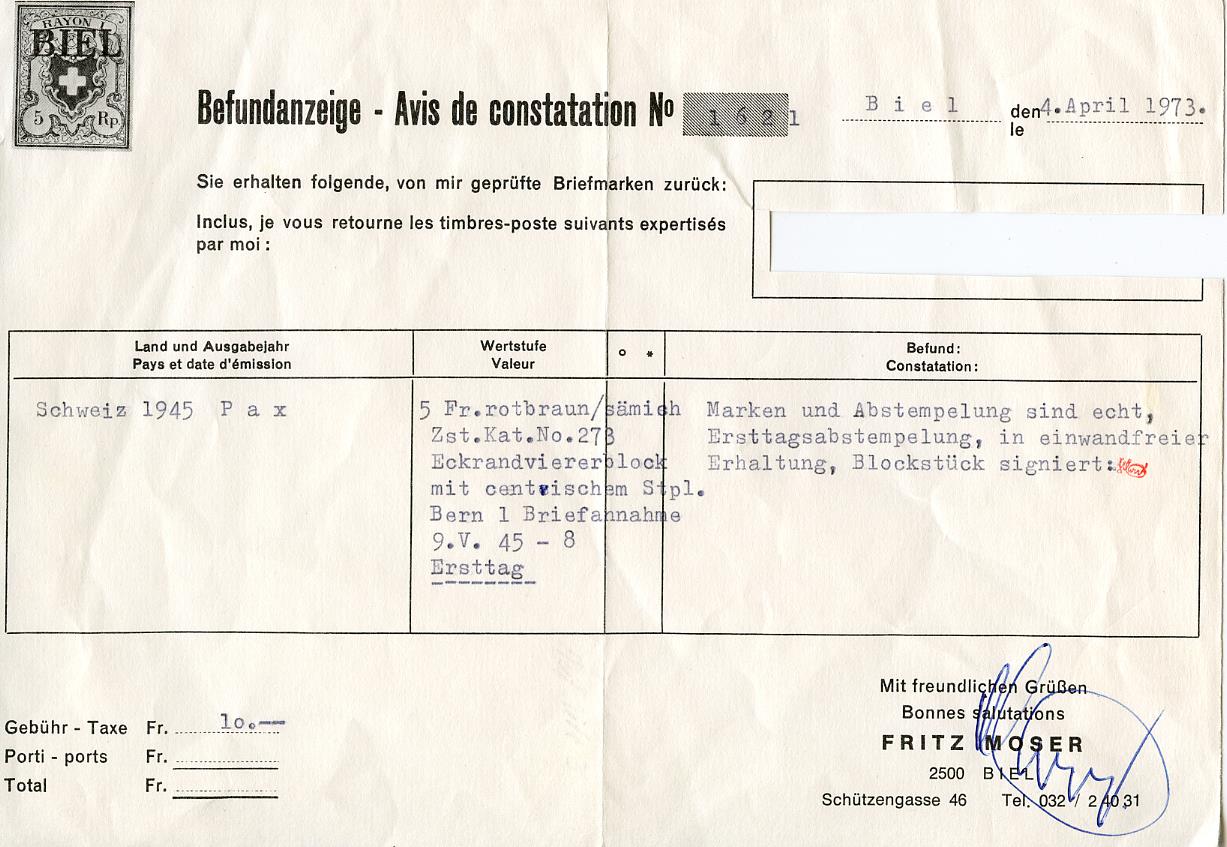 Esaminato da Moser con certificato n. 1621.