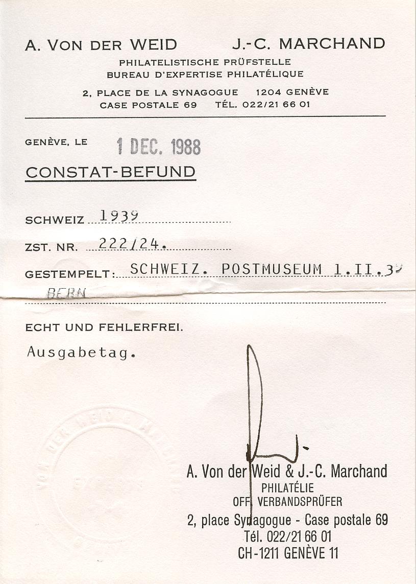 Geprüft von der Weid mit Attest
