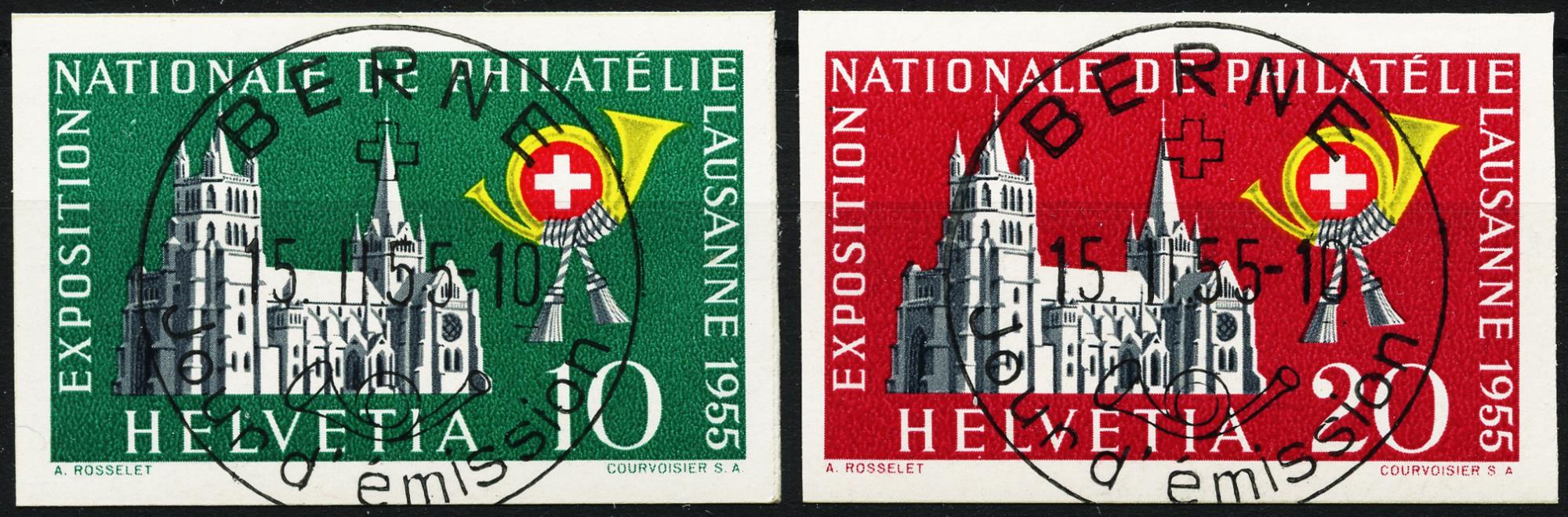 1955, Timbres individuels du bloc commémoratif de l'exposition philatélique nationale de Lausanne