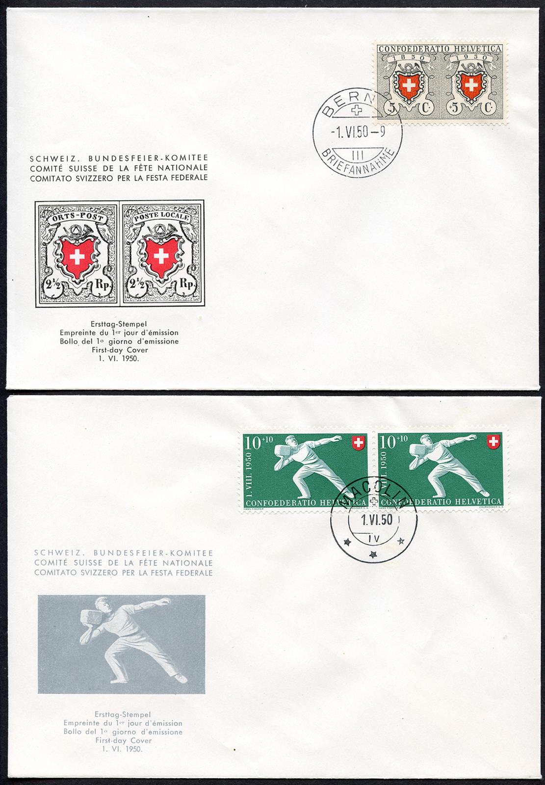 Ersttagsstempel MACOLIN 1.VI.50 IV und BERN -1.VI.50-9 III BRIEFANNAHME
