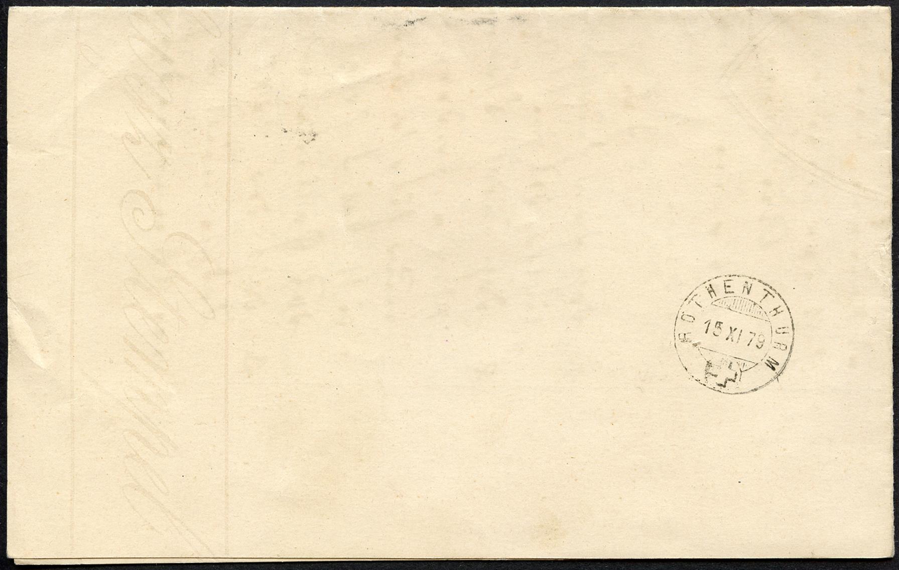 Ein schöner Chargé Brief des Bezirks Gericht in Schwyz. Beide Marken sind farbenfrisch, sehr gut gezähnt und jeweils einzeln entwertet. Die Frankatur, insbesonders auch die 40 Rp. ist in sehr guter Erhaltung. Rückseitig trägt der Brief trägt den Stempel von Rothenturm 15 IX 79.