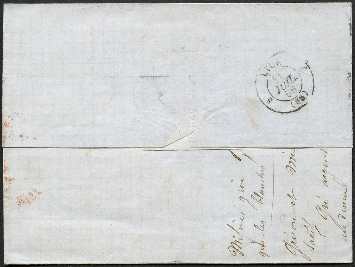 This well-preserved folded cover was sent from Geneva to Lyon. The vibrant stamp is nicely perforated and solidly canceled. The reverse bears an arrival postmark from Lyon dated July 1, 1966. The cover is very well postmarked and in good condition.